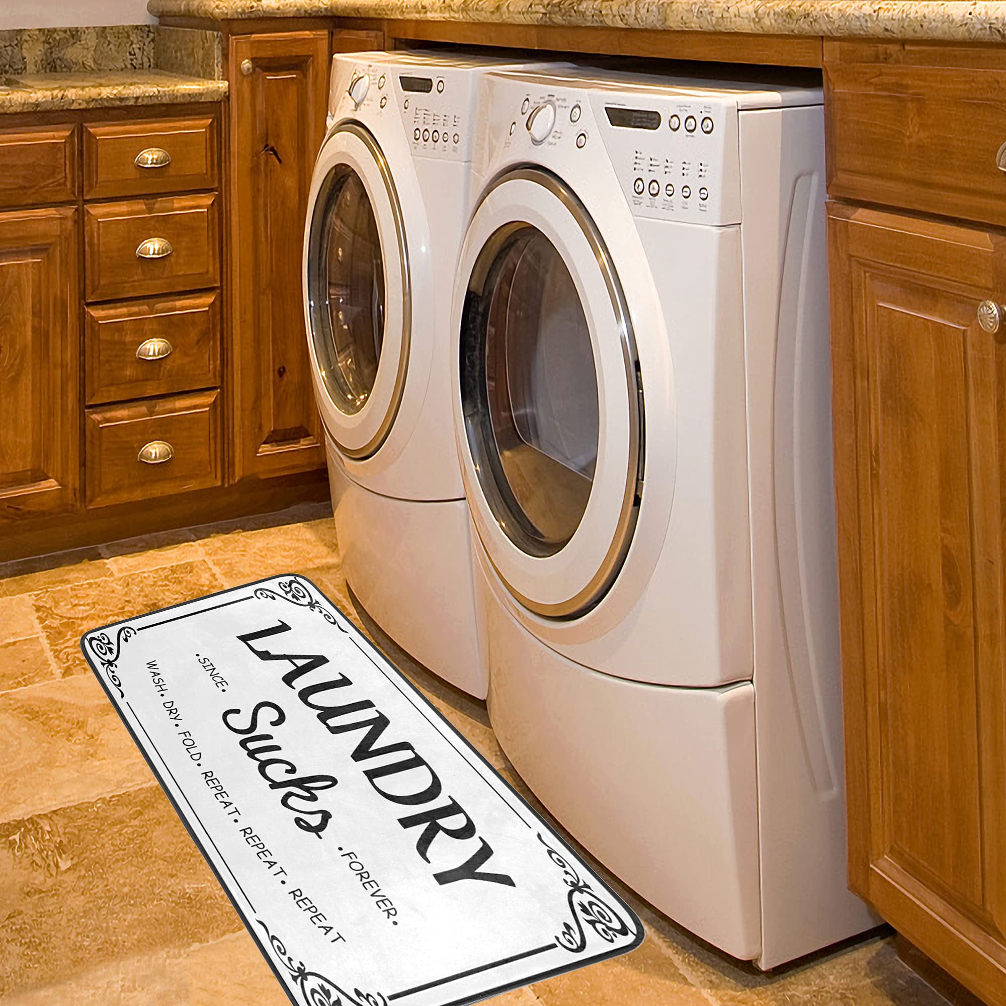 Amazon Com Laundry Sucks Laundry Room Rug Kitchen Floor Mats Bathroom Runner Rug Washing Machine Room Carpet Laundry Decor Area Rugs 39x20in White Home Kitchen